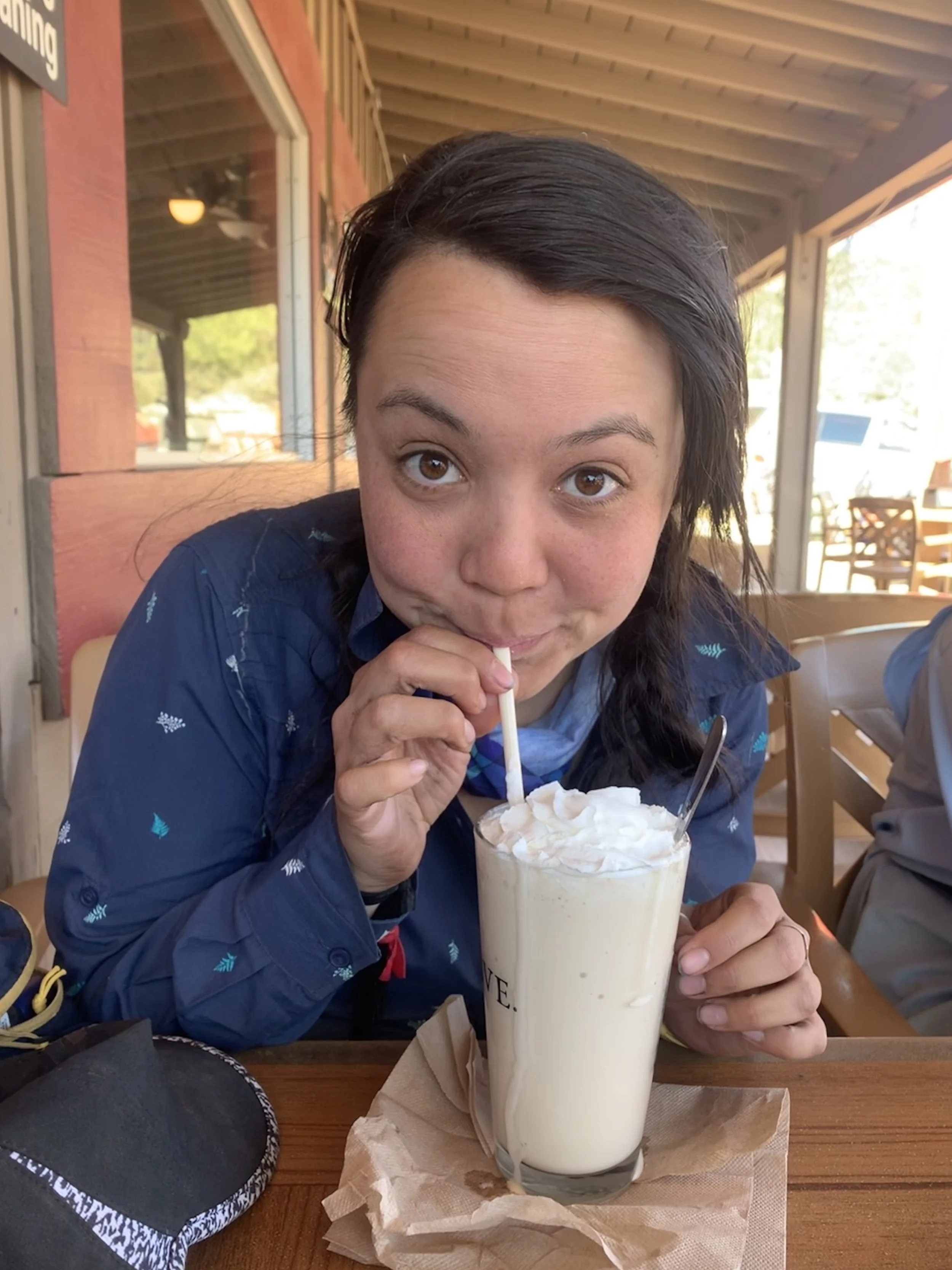 We were almost running down path to the cafe, off trail miles can be frustrating but worth it when there’s milkshakes and eggs at the other end! We poured over the huge breakfast menu before coming up with the great idea to get a short stack (small stack of pancakes) to share 4 ways and our own breakfast. I went for a cheesy omelette with a hash brown and guacamole AND a milkshake! I never normally drink milkshakes but out here it is my biggest craving!