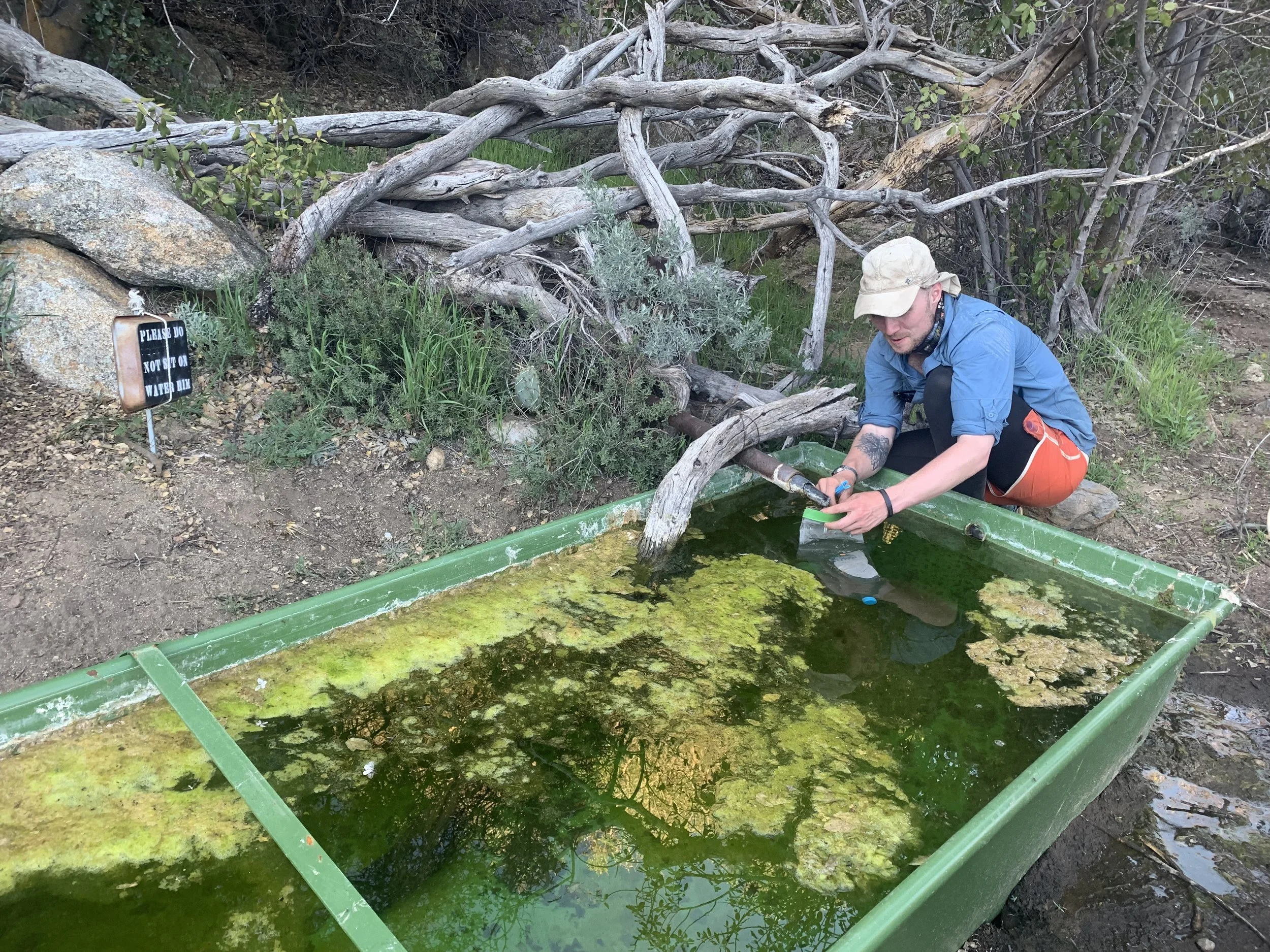 One of the hard things we learnt about being up so high on the ridge lines is that water is often lower if there is no snow melt run-off. We left our backpacks in a bush and took a trekking pole and a water bladder and climbed back down over 250 feet to get to a tunnel spring that emptied into a rather green trough. The frustrating thing was that none of us brought our filters down with us so we finally had all this water but couldn’t drink it! The climb back up to the trail was so tough, trying to balance the water bladder like a baby in your arms and not fall on the rocky steep terrain.