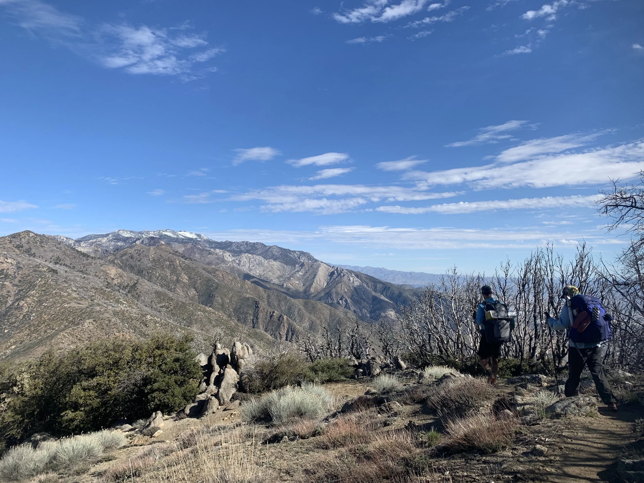 It was equal parts beautiful and nerve wracking, it felt so high up! We had to keep going down off trail for water which was so tiring, as was all the climbing. We kept using the view as an excuse to stop and take a breather! There was one patch of snow we crossed together but just as I turned back to see if we all made it across, Claire slipped and went almost head over heels over the edge of the cliff! I felt myself shout at her to turn onto her front to try and self arrest in the dirt. It all happened so quickly and luckily she was able to come to a stop by a tree. It took a moment for everyone to react but Miles was able to get down to her and take her bag as she scrambled back up. Fortunately it looked a lot worse than it was and Claire was shook up but not hurt.