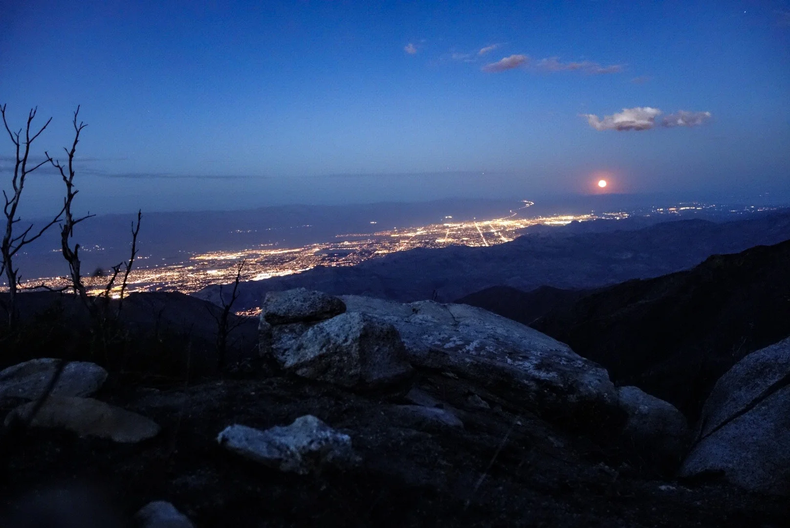 Dan informed us that it was going to be a blood moon and that the city we could see lighting up below was Palm Springs. Tuna and Bessie pulled up just before it got dark and joined us on our cowboy camping ridge, it was one of the best nights (and sunrises) we’ve had so far on trail. It was beautiful.